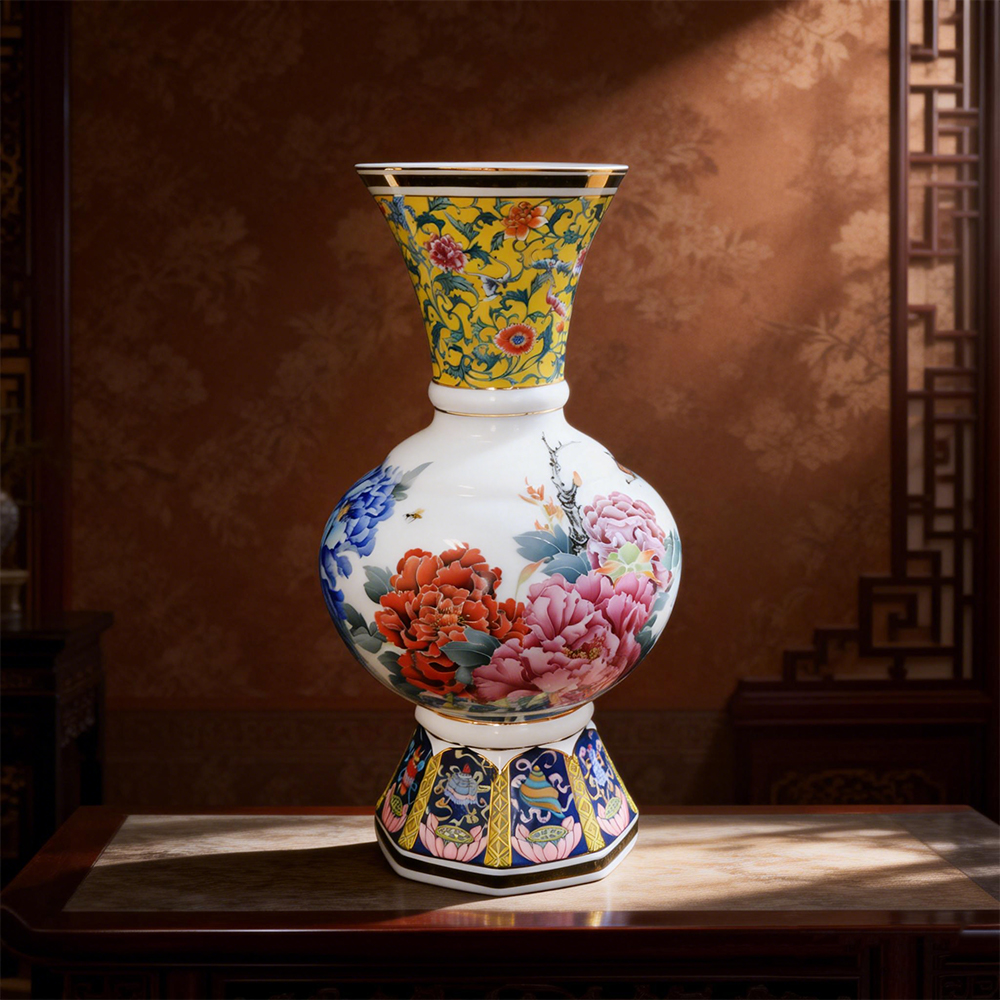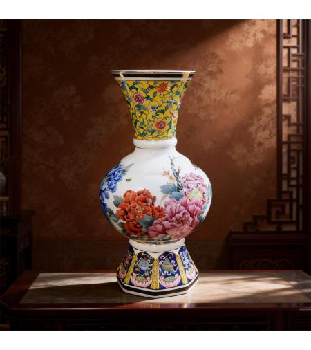 [品名]:《花开富贵》球福瓶 [品牌]:大球泥瓷 [货号]:DQN-P200002 [材质]:大球泥 [工艺]:高温釉下 [规格]:高46cm;肚径24cm [作者]:易刚丽(湖南省陶瓷工艺大师) [产地]:中国醴陵 [价格]:282000.00