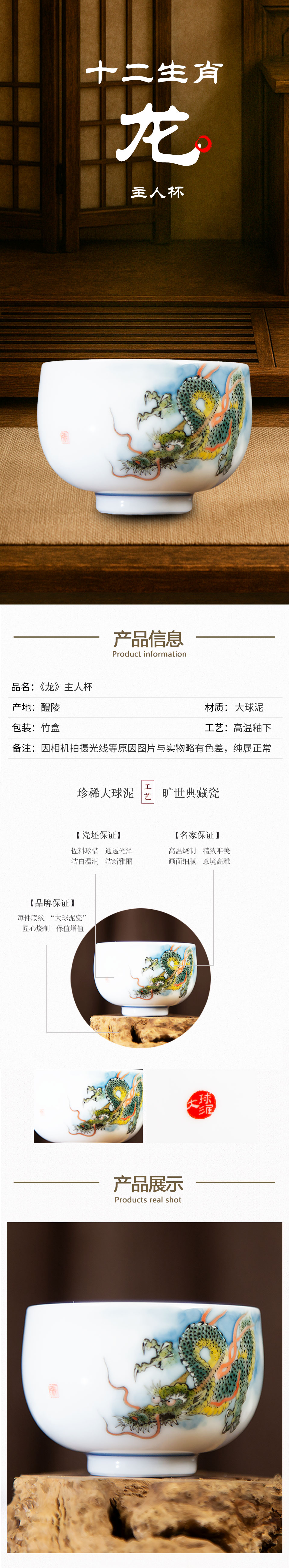 [品名]:《龙》主人杯 [品牌]:大球泥 [货号]:DQN-PMB240041 [材质]:大球泥 [工艺]:高温釉下 [规格]:高5cm;口径9cm [作者]:易刚丽(湖南省陶瓷工艺大师) [产地]:醴陵 [价格]:5200.00元