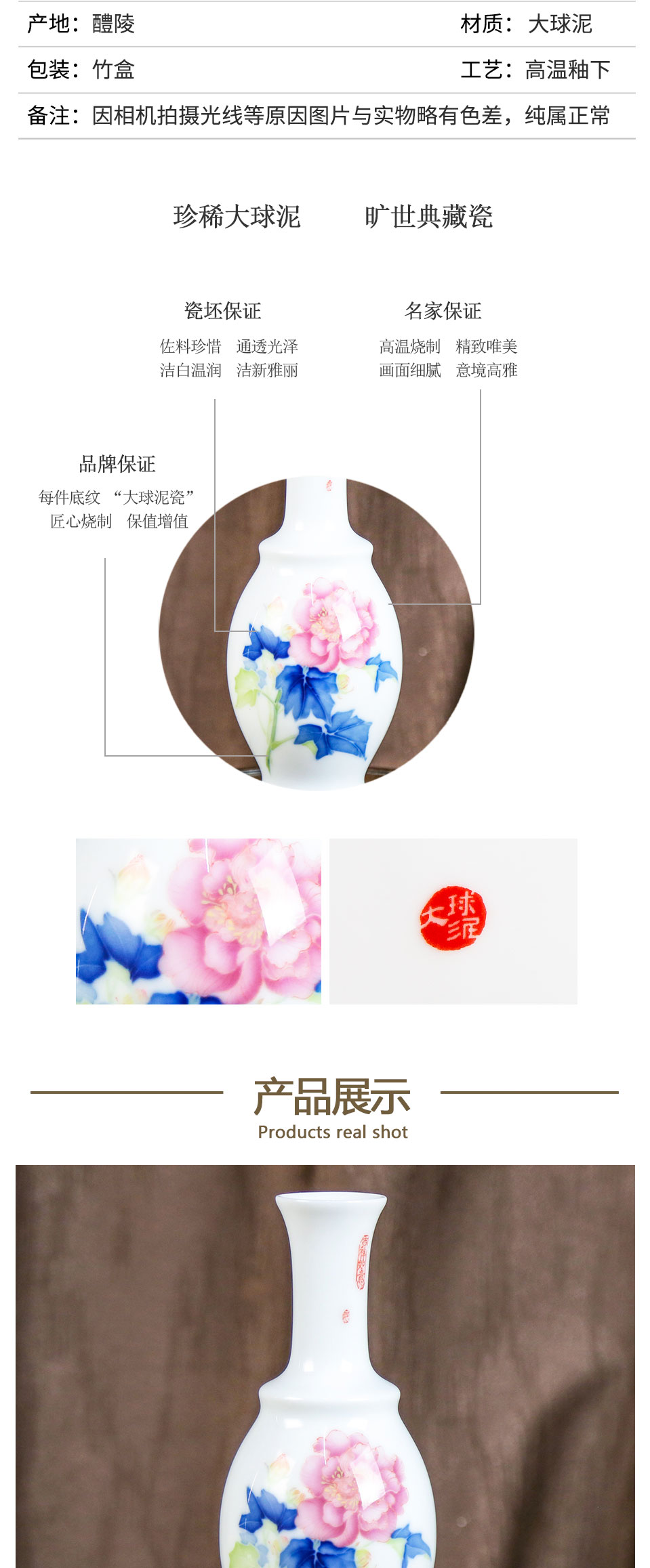 [品名]:《季风》 [品牌]:大球泥瓷艺 [货号]:DQN-P250015 [材质]:大球泥 [工艺]:高温釉下 [规格]:高19cm;肚径7cm [作者]:易刚丽(湖南省陶瓷工艺大师) [产地]:湖南醴陵 [价格]:56000.00元