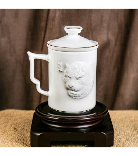 [品名]:《千岁杯.生肖虎》茶漏杯 [品牌]:地球泥 [货号]:YZN-CB250010 [材质]:优质泥 [工艺]:高温瓷雕 [规格]:3头 [作者]:大球泥瓷艺 [产地]:醴陵 [价格]:1000.00元