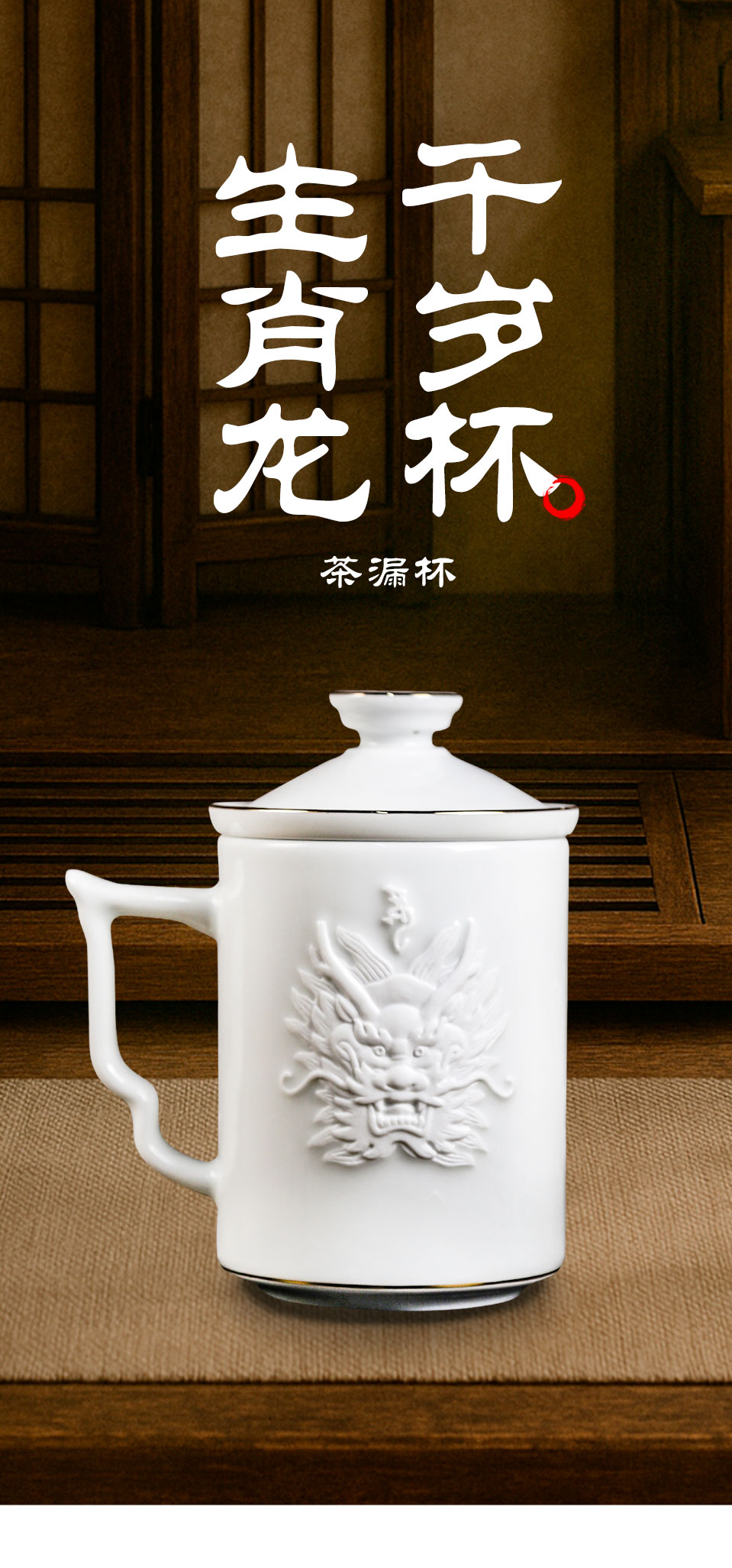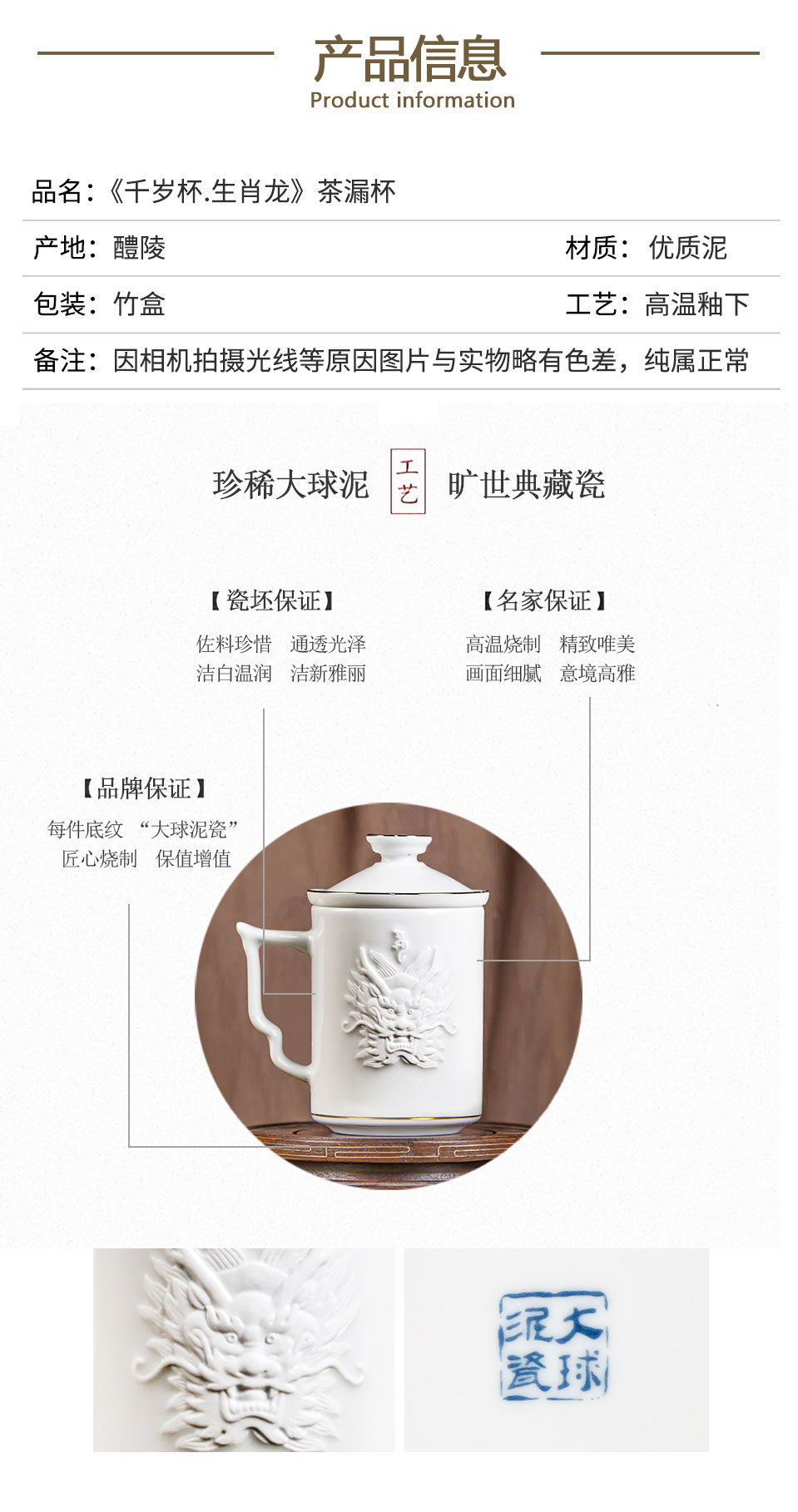 [品名]:《千岁杯.生肖龙》茶漏杯 [品牌]:地球泥 [货号]:YZN-CB250012 [材质]:优质泥 [工艺]:高温瓷雕 [规格]:3头 [作者]:大球泥瓷艺 [产地]:醴陵 [价格]:1000.00元