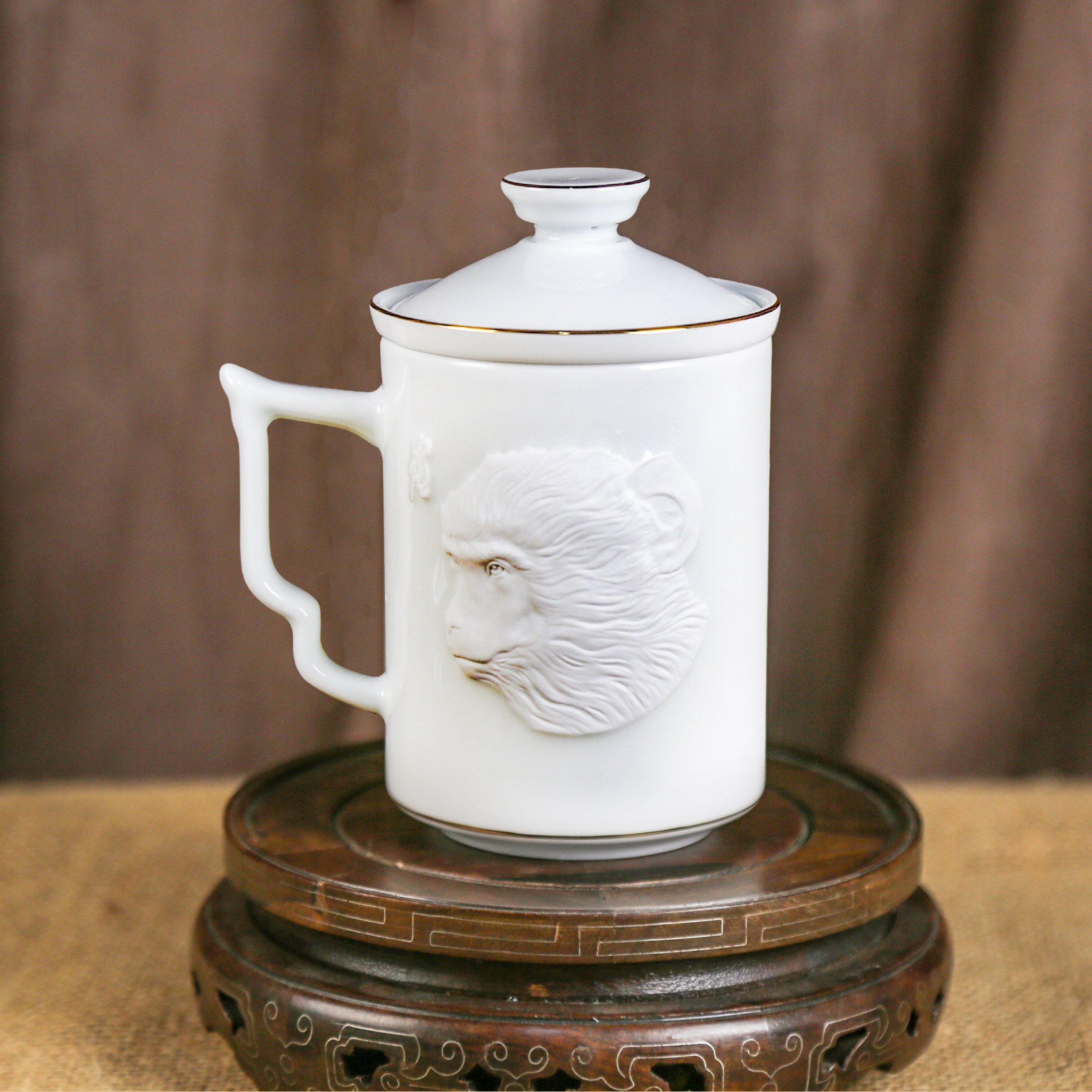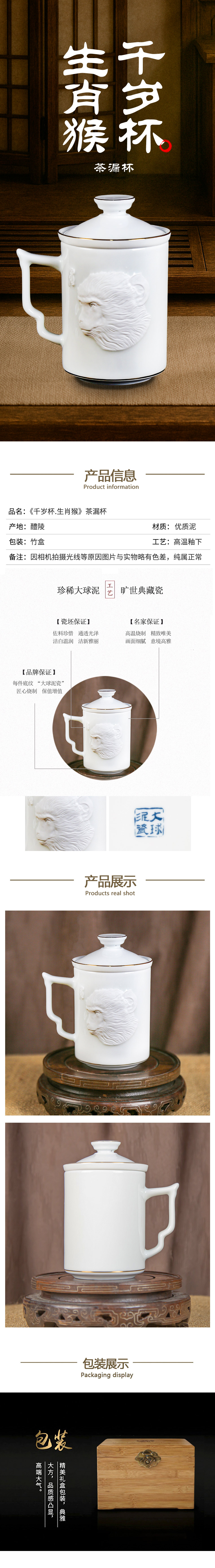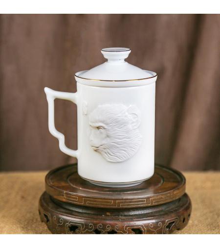 [品名]:《千岁杯.生肖猴》茶漏杯 [品牌]:地球泥 [货号]:YZN-CB250016 [材质]:优质泥 [工艺]:高温釉下 [规格]:15.5cm [作者]:大球泥瓷艺 [产地]:醴陵 [价格]:1000.00元