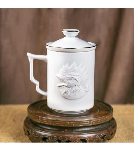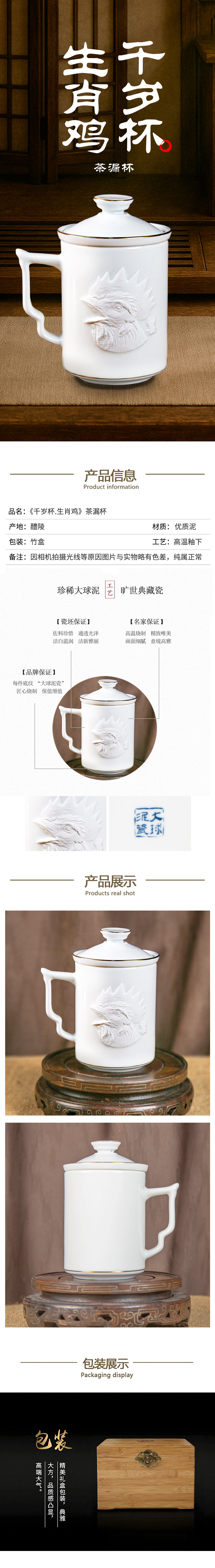 [品名]:《千岁杯.生肖鸡》茶漏杯 [品牌]:地球泥 [货号]:YZN-CB250017 [材质]:优质泥 [规格]:15.5cm [作者]:大球泥瓷艺 [产地]:醴陵 [价格]:1000.00元 [工艺]:高温瓷雕