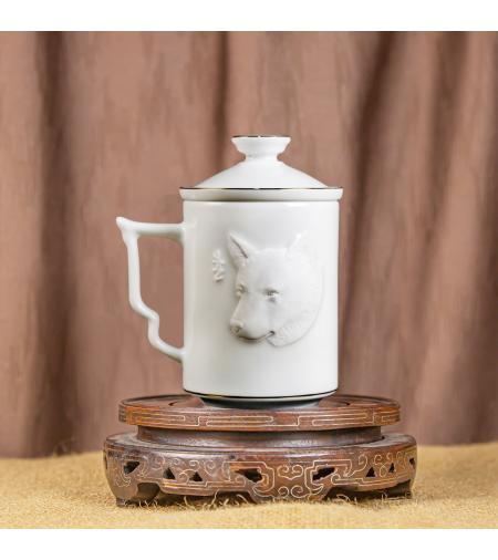 [品牌]:地球泥 [材质]:优质泥 [规格]:15.5cm [作者]:大球泥瓷艺 [产地]:醴陵 [价格]:1000.00元 [品名]:《千岁杯.生肖狗》茶漏杯 [货号]:YZN-CB250018 [工艺]:高温瓷雕