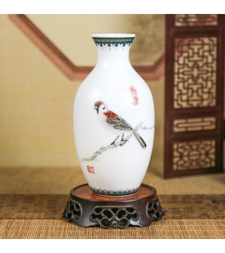 [品名]:《四季平安》 [品牌]:大球泥瓷 [货号]:DQN-P170087 [材质]:大球泥 [工艺]:高温釉下 [规格]:高17cm;肚径9cm [作者]:张江华(高级工艺美术师) [产地]:中国醴陵 [价格]:61000.00元