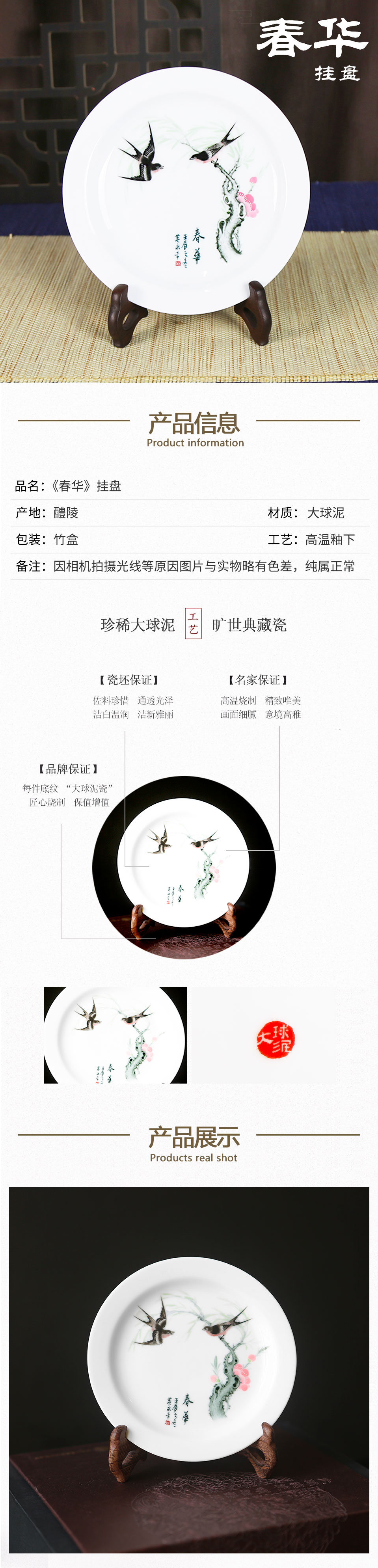 [品名]:《春华》 [品牌]:大球泥瓷 [货号]:DQN-GP140001 [材质]:大球泥 [工艺]:高温釉下 [规格]:直径14cm [作者]:黄永平(中国工艺美术大师) [产地]:中国醴陵 [价格]:46000.00元
