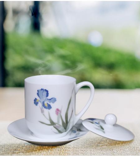 [货号]:YZN-B180001 [材质]:优质泥 [作者]:大球泥瓷艺出品 [产地]:中国醴陵 [规格]:高14cm;宽15cm [工艺]:高温釉下 [品牌]:地球泥 [价格]:650元 [品名]:《蝴蝶兰》杯盖碟(优质泥)