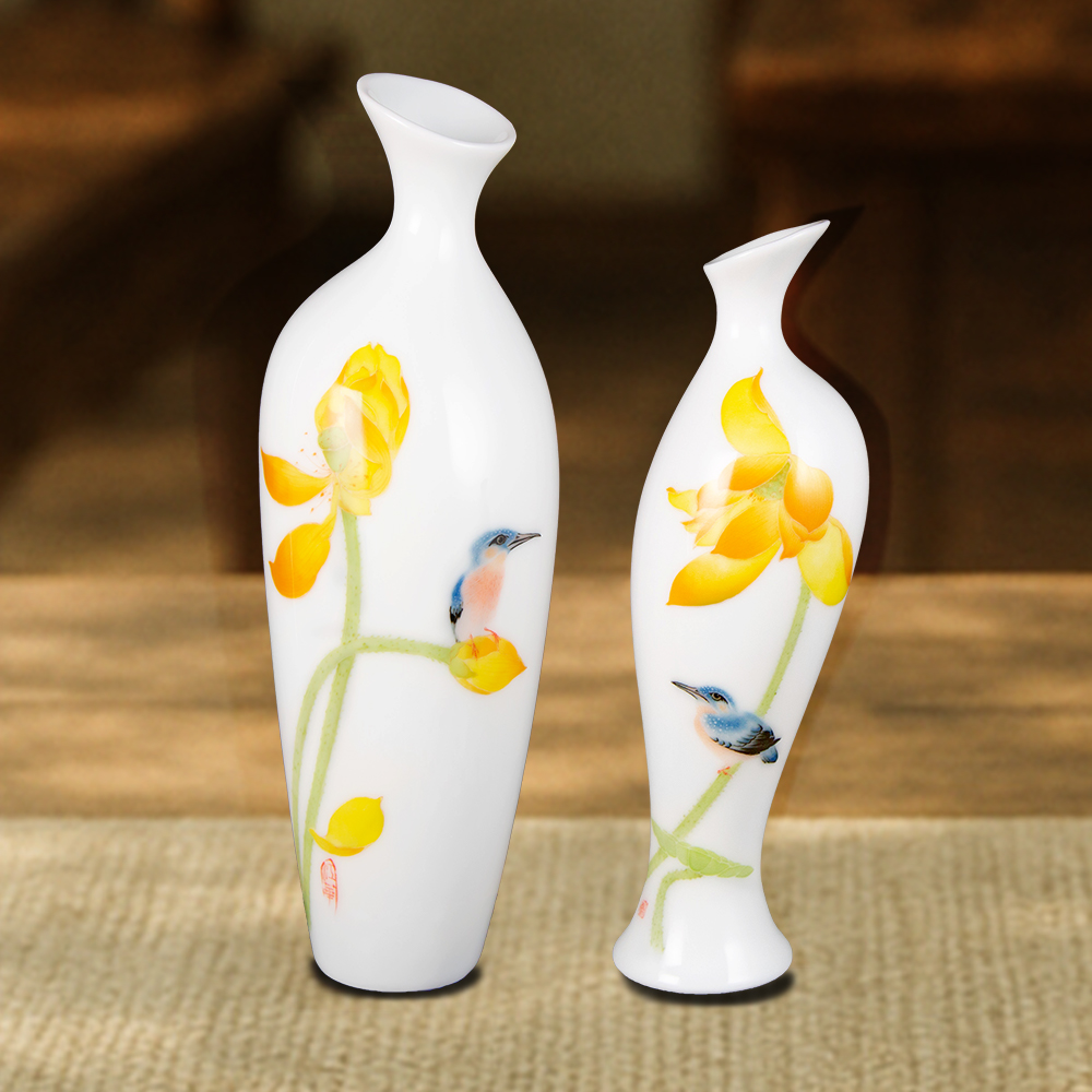 [品名]:《比翼连枝》对眸瓶 [品牌]:大球泥瓷艺 [货号]:DQI-P250009 [材质]:大球泥 [工艺]:高温釉下 [规格]:高26cm;肚径9cm 高25cm;肚径7cm [作者]:张江华(高级工艺美术师) [产地]:醴陵 [价格]:94000.00元