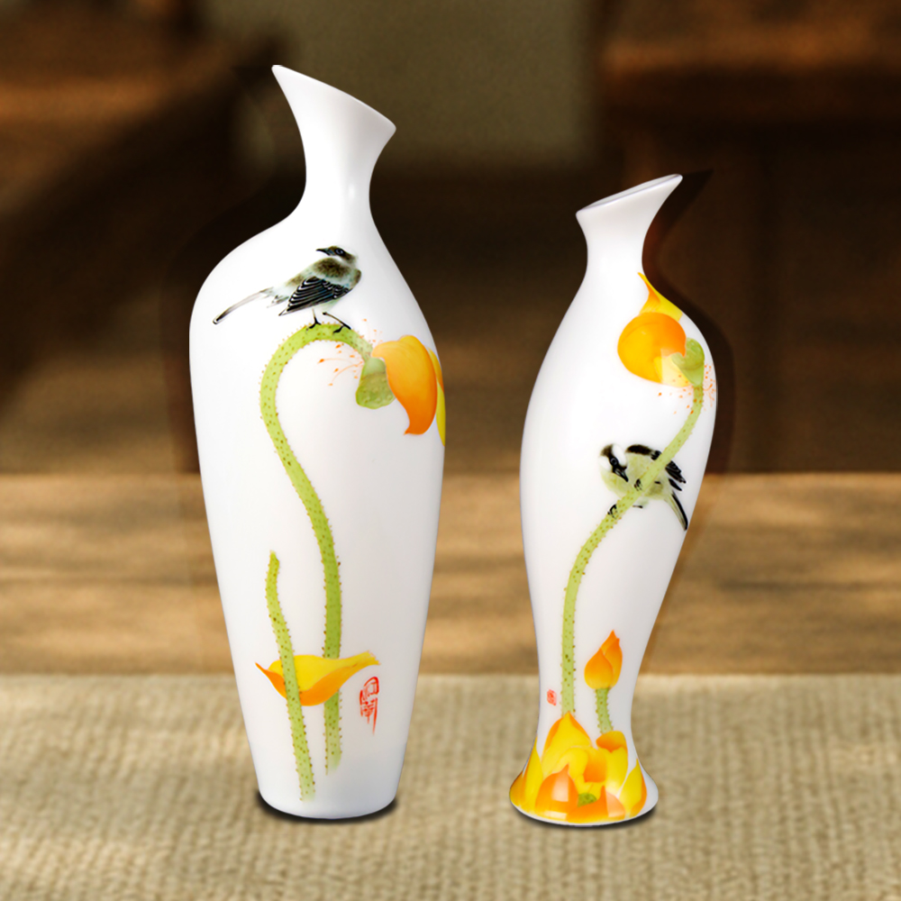 [品名]:《天作之和》对眸瓶 [品牌]:大球泥瓷艺 [货号]:DQl-P250007 [材质]:大球泥 [工艺]:高温釉下 [规格]:高26cm;肚径9cm 高25cm;肚径7cm [作者]:张江华(高级工艺美术师) [产地]:醴陵 [价格]:96000.00元