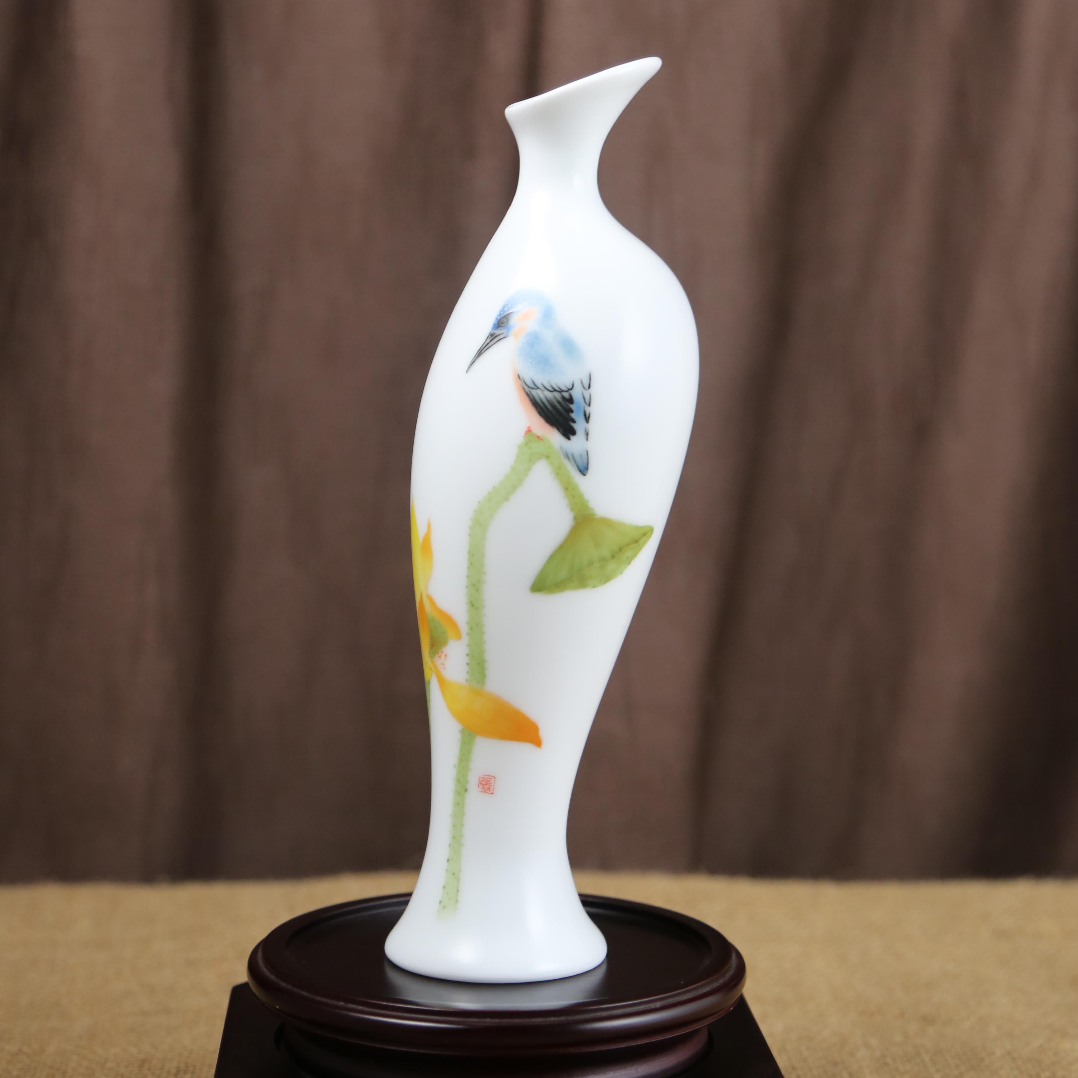 [品名]:《锦绣和鸣》对眸瓶 [品牌]:大球泥瓷艺 [货号]:DQN-P250011 [材质]:大球泥 [工艺]:高温釉下 [规格]:高26cm;肚径9cm 高25cm;肚径7cm [作者]:张江华(高级工艺美术师) [产地]:醴陵 [价格]:94000.00元