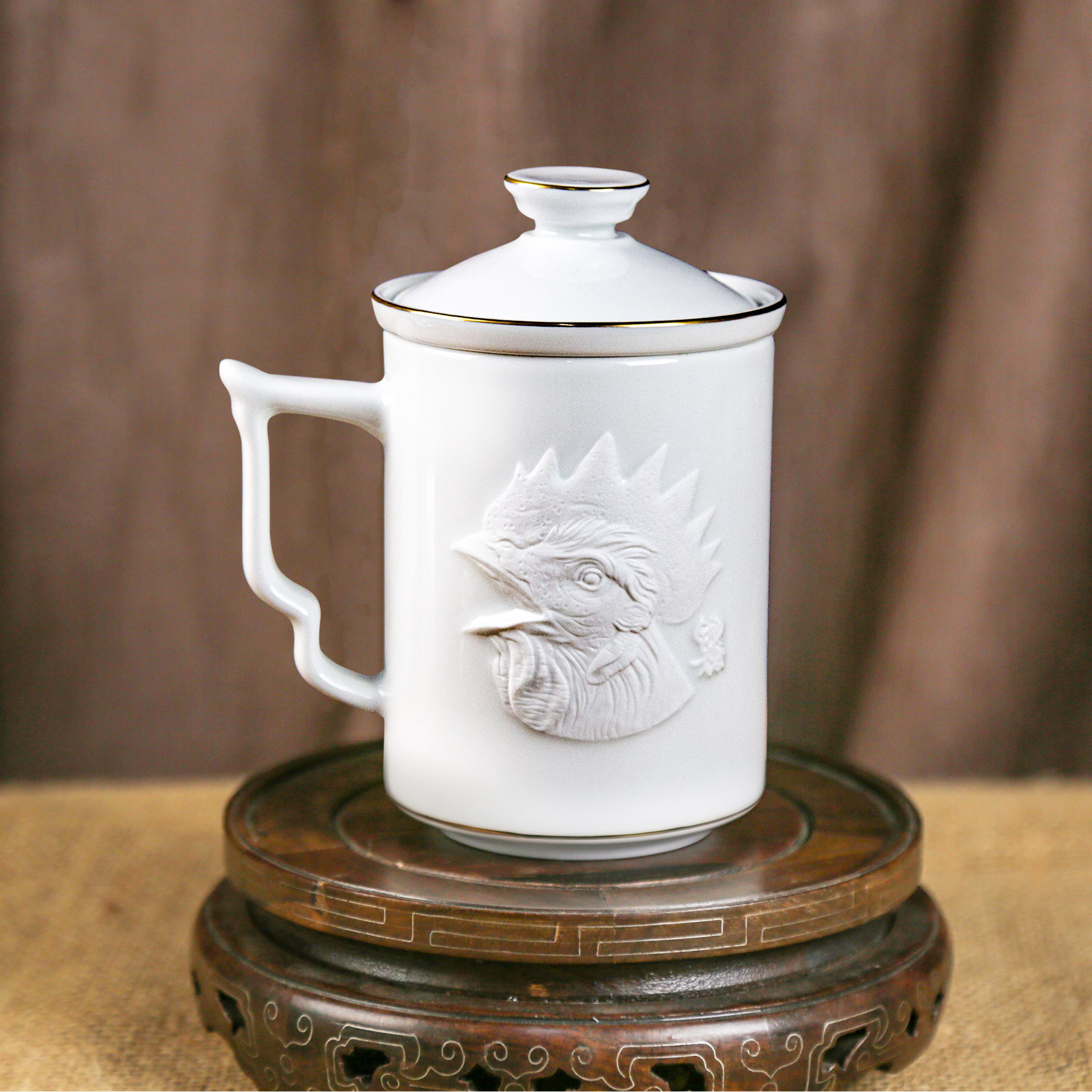 [品名]:《千岁杯.生肖鸡》茶漏杯 [品牌]:地球泥 [货号]:YZN-CB250017 [材质]:优质泥 [规格]:15.5cm [作者]:大球泥瓷艺 [产地]:醴陵 [价格]:1000.00元 [工艺]:高温瓷雕