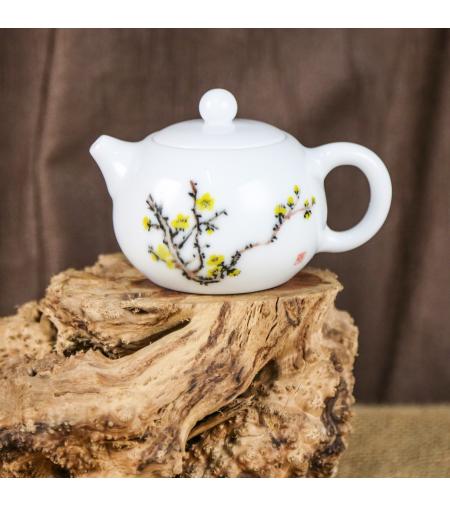 [品名]:《金梅清韵》小西施壶 [品牌]:大球泥瓷艺 [货号]:DQN-H250018 [材质]:大球泥 [工艺]:高温釉下 [作者]:张江华(高级工艺美术师) [产地]:中国醴陵 [价格]:20000.00元
