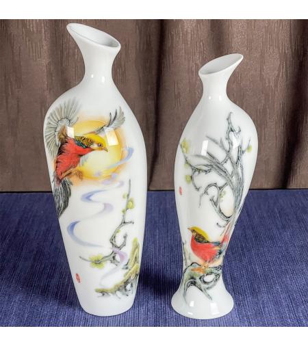 [品名]:《前程似锦》对瓶 [品牌]:大球泥瓷艺 [货号]:DQN-P2400030 [材质]:大球泥 [工艺]:高温釉下 [规格]:高26cm 肚径9cm;高22cm肚径7cm [作者]:张江华(高级工艺美术师) [产地]:中国醴陵 [价格]:94000.00元