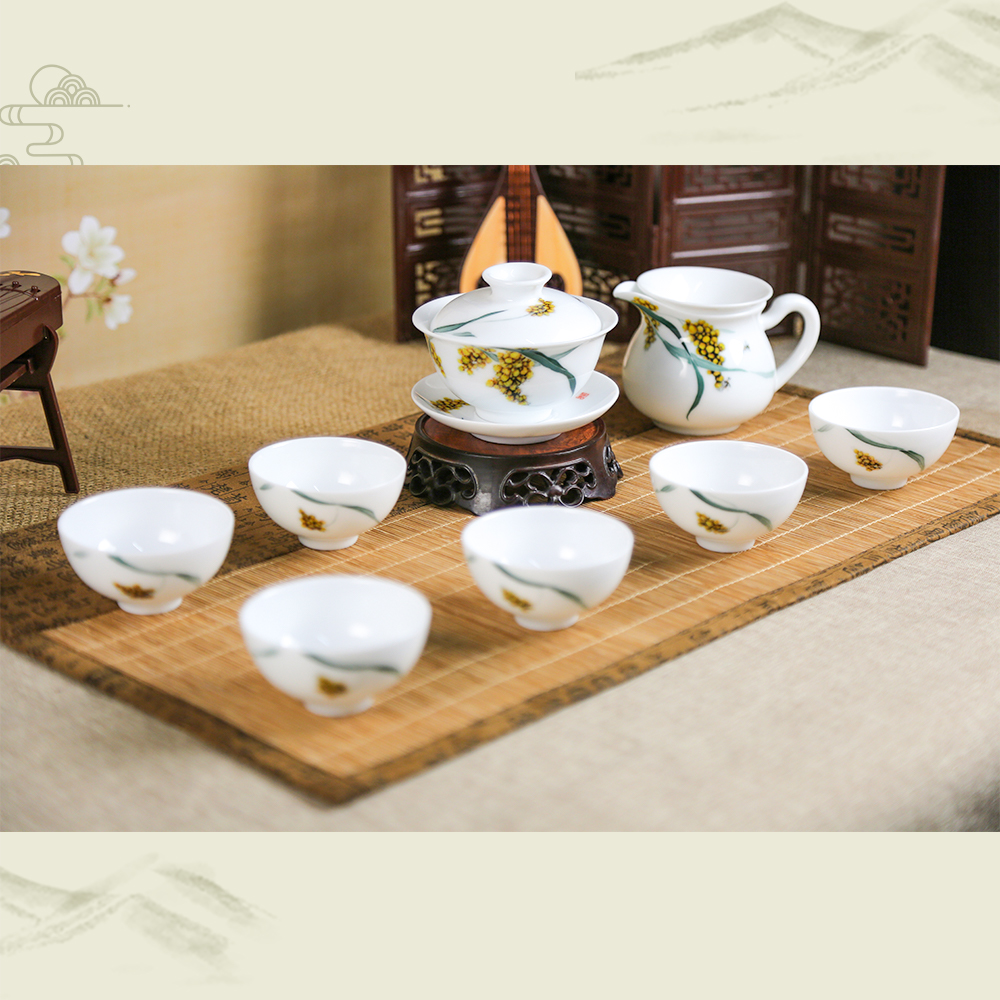 [品名]:《岁物丰成》功夫茶具 [品牌]:大球泥瓷 [货号]:DQN-CJ200006 [材质]:大球泥 [工艺]:高温釉下 [规格]:11头 [作者]:易刚丽(湖南省陶瓷工艺大师) [产地]:中国醴陵 [价格]:84000.00元