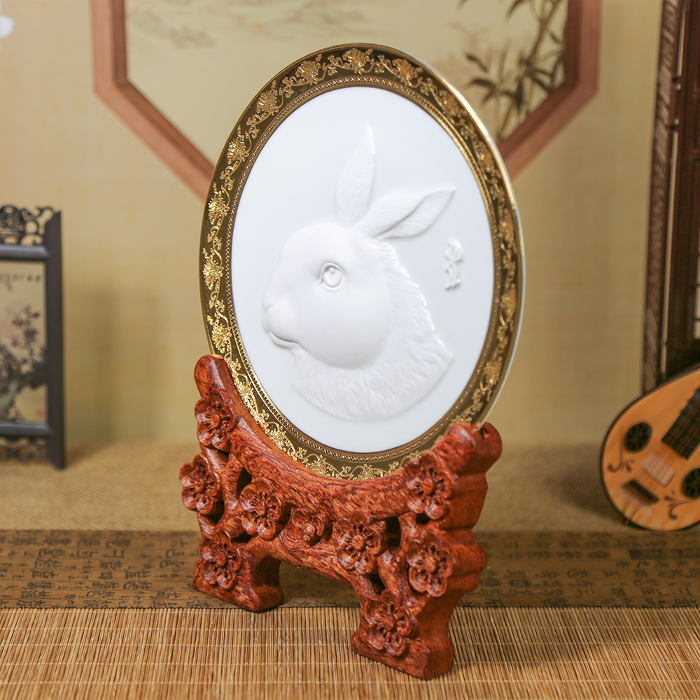 首页 艺术收藏系列 套具/其它 《十二生肖·兔》浮雕瓷盘